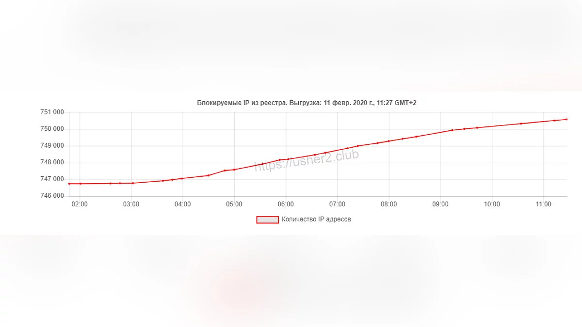 Если еще 10 февраля в реестре находилось свыше 2,8 млн заблокированных IP-адресов, то сегодня их осталось около 750 тыс (к каким именно ресурсам относятся заблокированные, не сообщается).