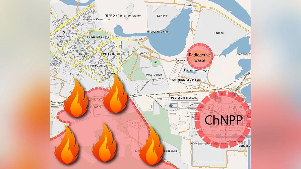 Масштабный пожар на территории зоны отчуждения Чернобыльской АЭС, который не могут потушить уже почти две недели, добрался до Припяти и приблизился на расстояние около 2 км к хранилищам радиоактивных отходов «Подлесный». Именно в нем расположены высокоактивные отходы Чернобыльской зоны и от самой ЧАЭС.