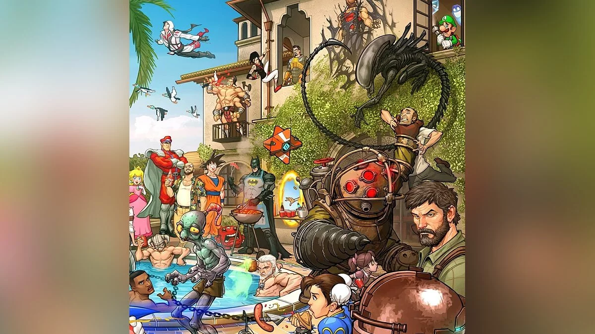 Известный художник Патрик Браун (Patrick Brown) опубликовал потрясающий арт с десятками популярных героев игр в одном кадре.