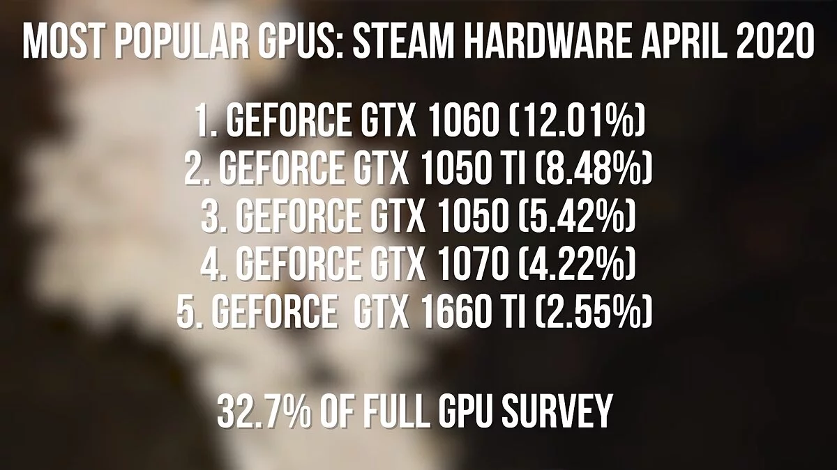 По словам Лидбеттера, множество пользователей Steam не готовы к следующему поколению. Согласно статистике за апрель 2020 года, самой популярной видеокартой в сервисе Valve остается GeForce GTX 1060 — этого явно не хватит, чтобы насладиться свежими новинками на максимальных настройках графики.