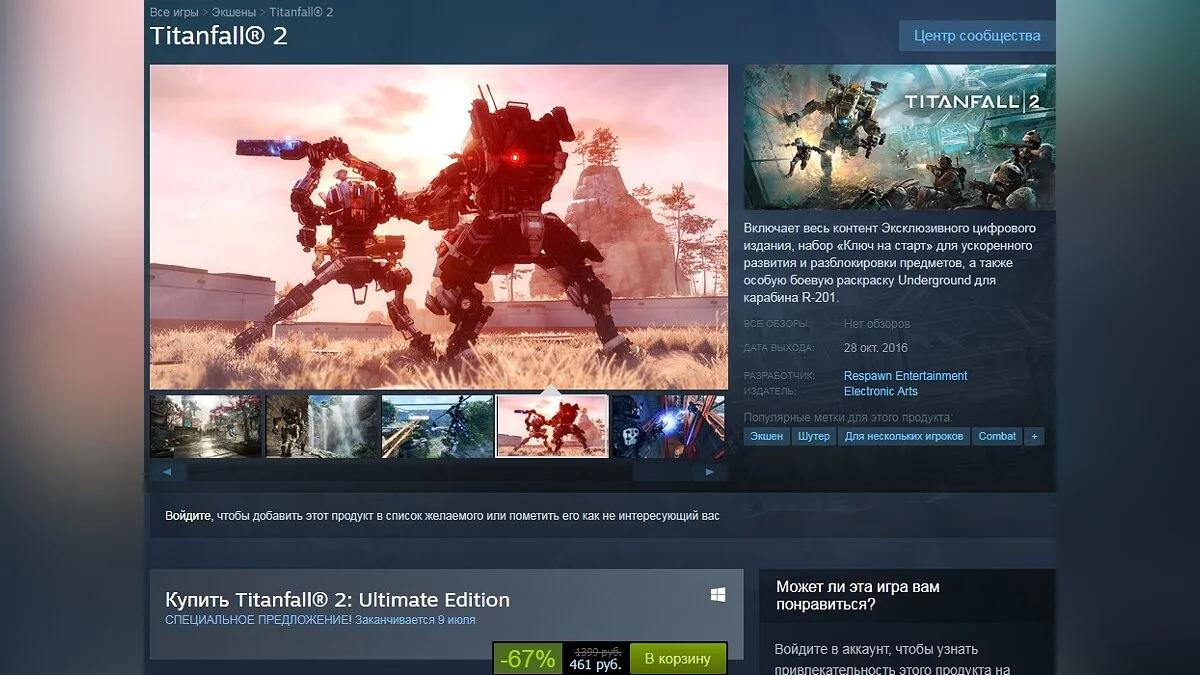 Теперь поиграем — в Steam со скидкой 50% вышли Titanfall 2, The Sims 4 и другие хиты EA