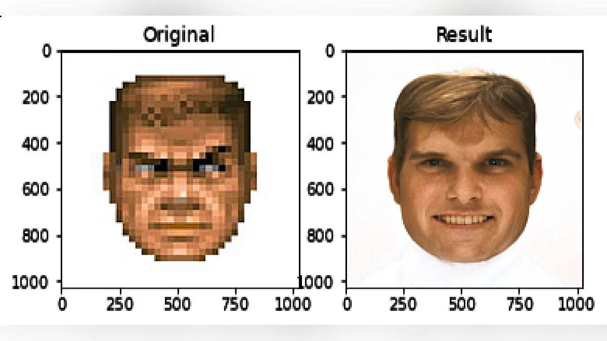 Разработчик под псевдонимом Bomze выложил в открытый доступ нейросеть Face Depixelizer, которая из самых маленьких пиксельных портретных изображений создает фотографию в более высоком разрешении. С помощью этой программы игроки стали «улучшать» героев оригинальных Doom, Wolfenstein, Minecraft и других проектов с пиксельной графикой. Результат вышел далеко не самый реалистичный, а даже страшный и неприятный.