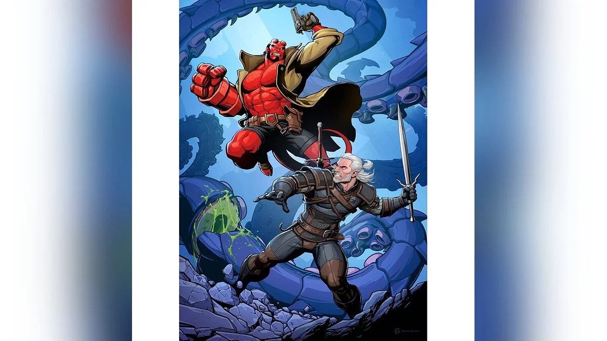 Геральт из The Witcher 3 против Хеллбоя — художник показал битву двух культовых героев