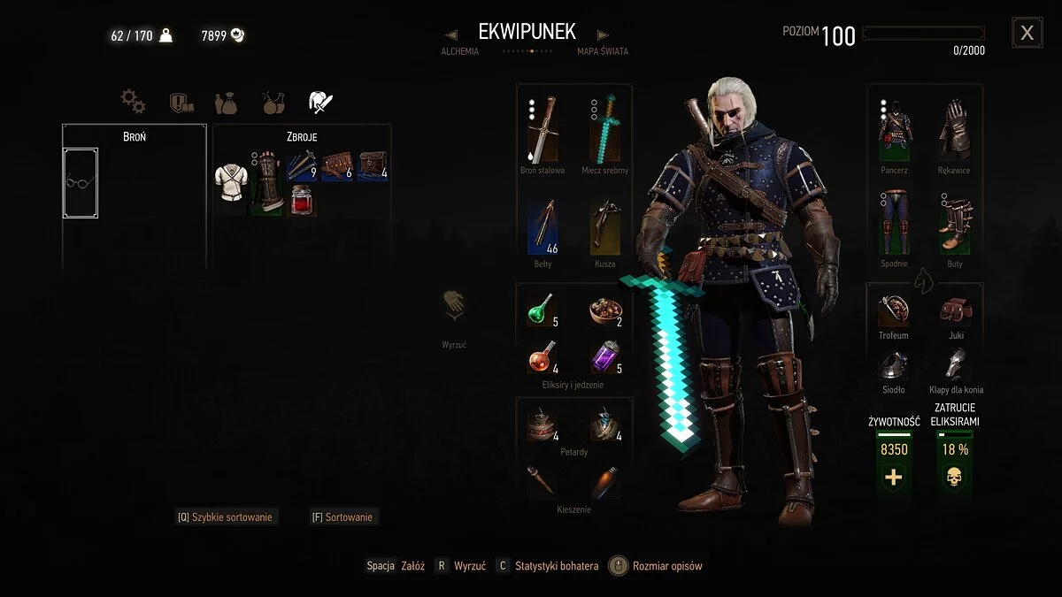 Пользователь Nexus Mods под ником milckywayy опубликовал интересную модификацию, которая наверняка понравится поклонникам The Witcher 3 и Minecraft. Благодаря ей Геральт из Ривии может путешествовать по миру наперевес с алмазным мечом.