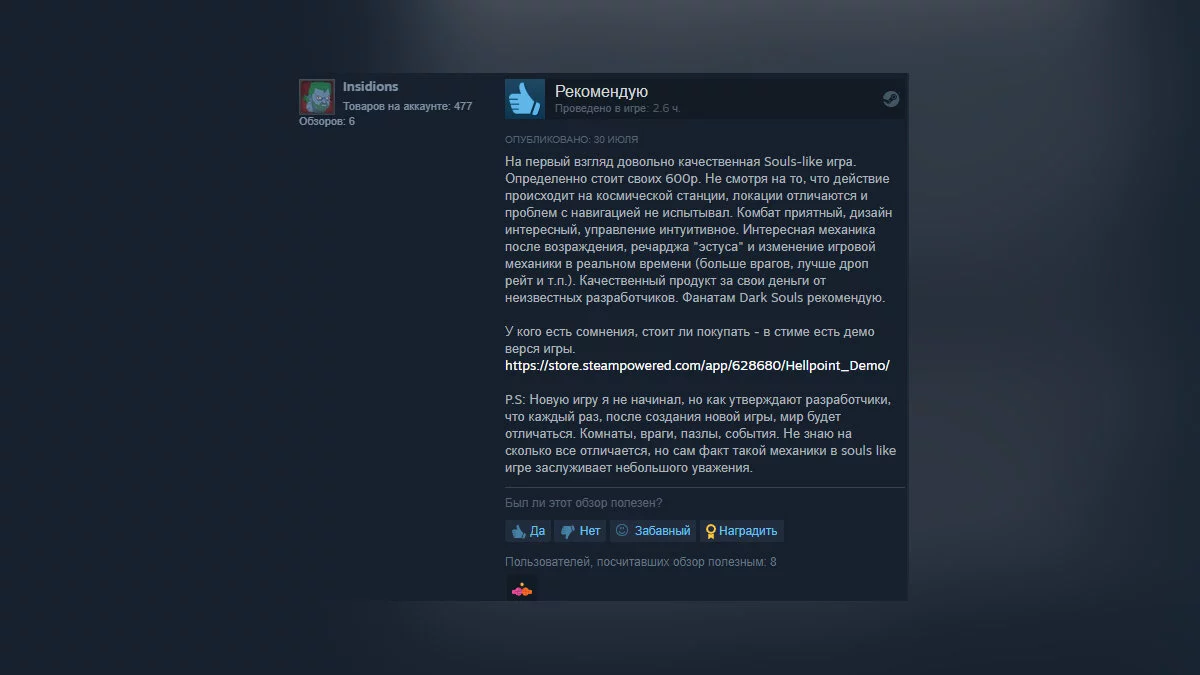 Вышла новая RPG, которая похожа на Dark Souls, но в космосе. Вот что о ней пишут в Steam