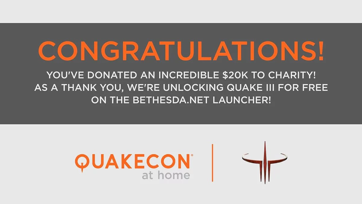 Bethesda объявила, что бесплатно раздаст Quake 3 на ПК пользователям Bethesda Launcher. Это объявление компания сделала после того, как в ходе цифрового ивента QuakeCon at home зрители онлайн-трансляции пожертвовали на благотворительность свыше $20 тыс.