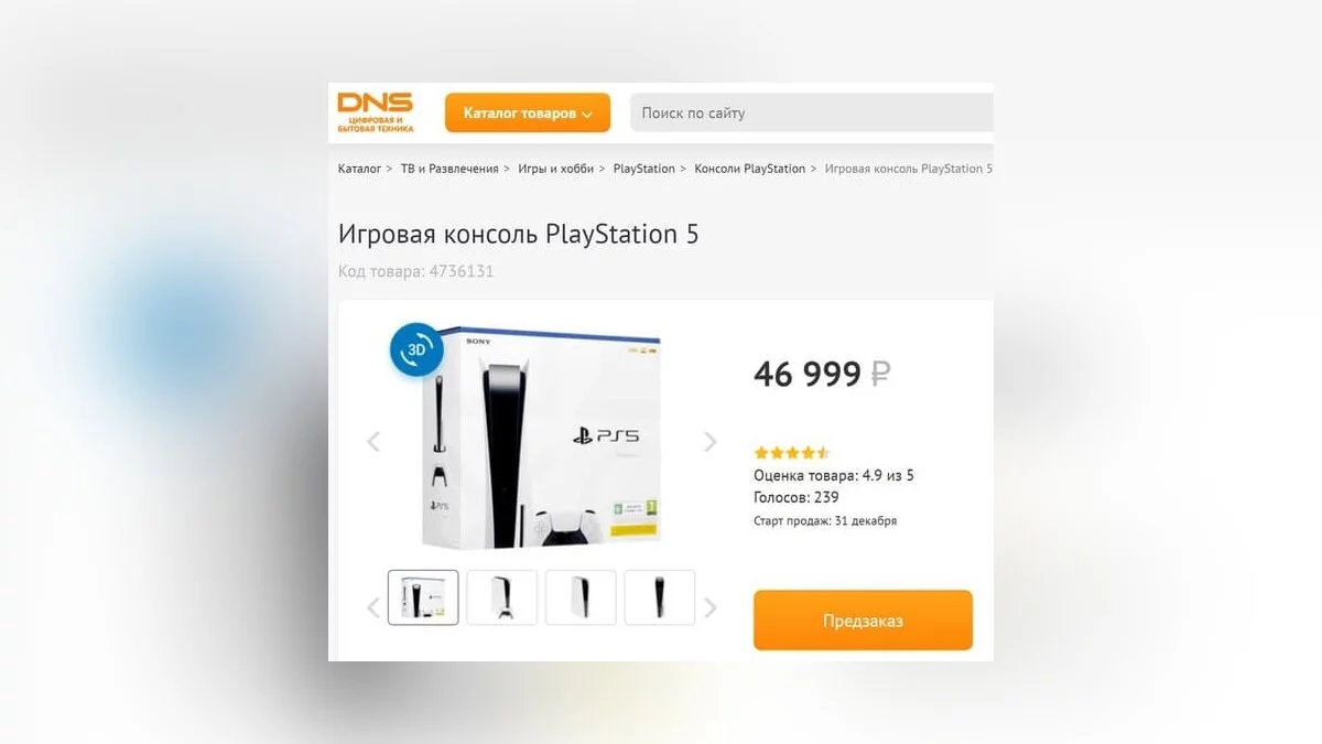 В сети магазинов DNS на короткое время снова возобновили приём предзаказов на PlayStation 5. Цену на консоль выставили ту же, что и ранее 46 999 рублей. Более того, там указана дата начала продаж — 31 декабря.