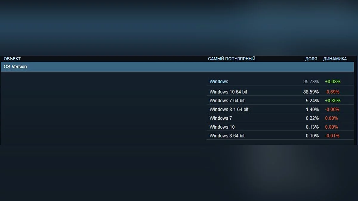 С операционными системами творится что-то странное: самой любимой до сих пор остается Windows 10 (88,59%), однако за прошлый месяц она немного просела. В свою очередь фанатов Windows 7 (5,24%) стало на 0,85% больше.