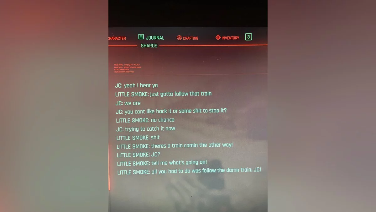 Пасхалку можно обнаружить на железнодорожных путях рядом с трейлерным парком. И если вы играли в San Andreas, то погоню за поездом вы точно помните. В Cyberpunk 2077 обыгрывается ставший мемом диалои Си-Джея и Биг Смоука, где последний истошно просит главного героя следовать за «чертовым поездом».
