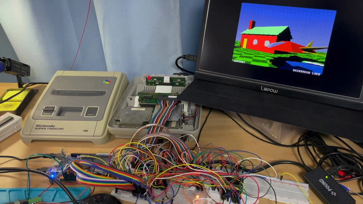 Отметим, что работы потребуется модифицированный картридж, который использует чип, аналогичный Super FX. Подобное решение задействовано Star Fox. По словам автора YouTube-канала Shironeko Labs, SNES запускает игру или визуализацию, после чего передает описание сцены чипу в картридже для создания визуальных эффектов. Технические аспекты доступны по ссылке.