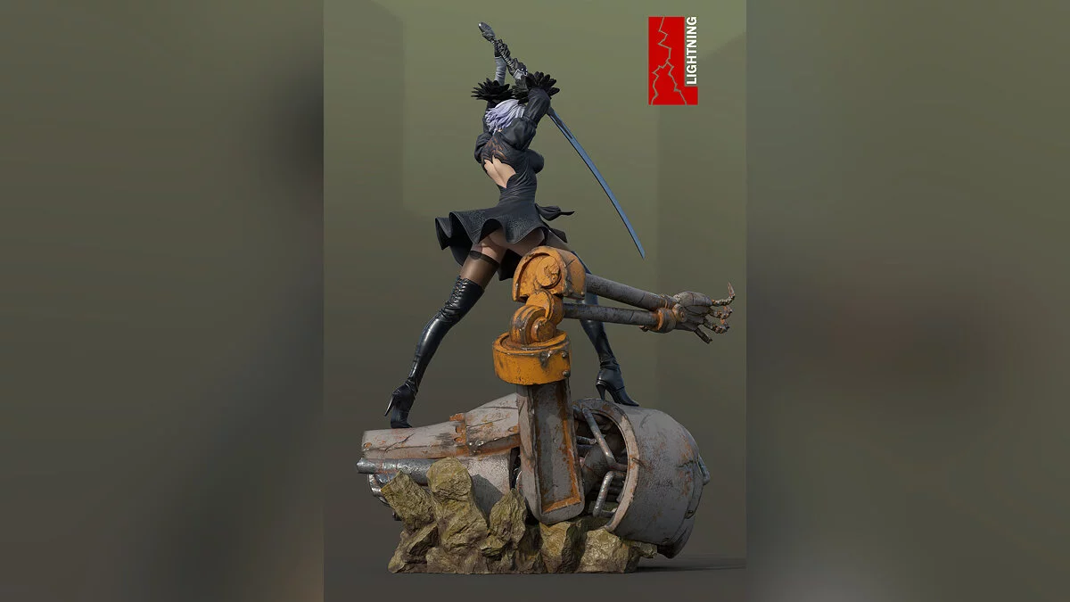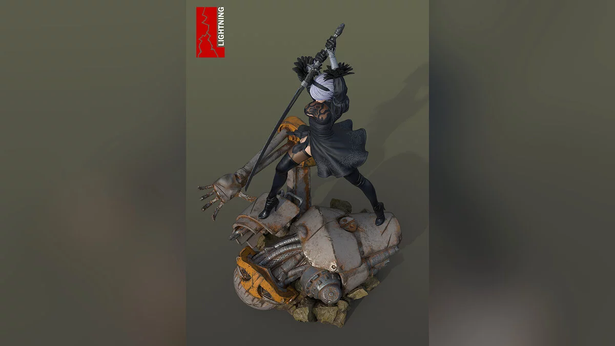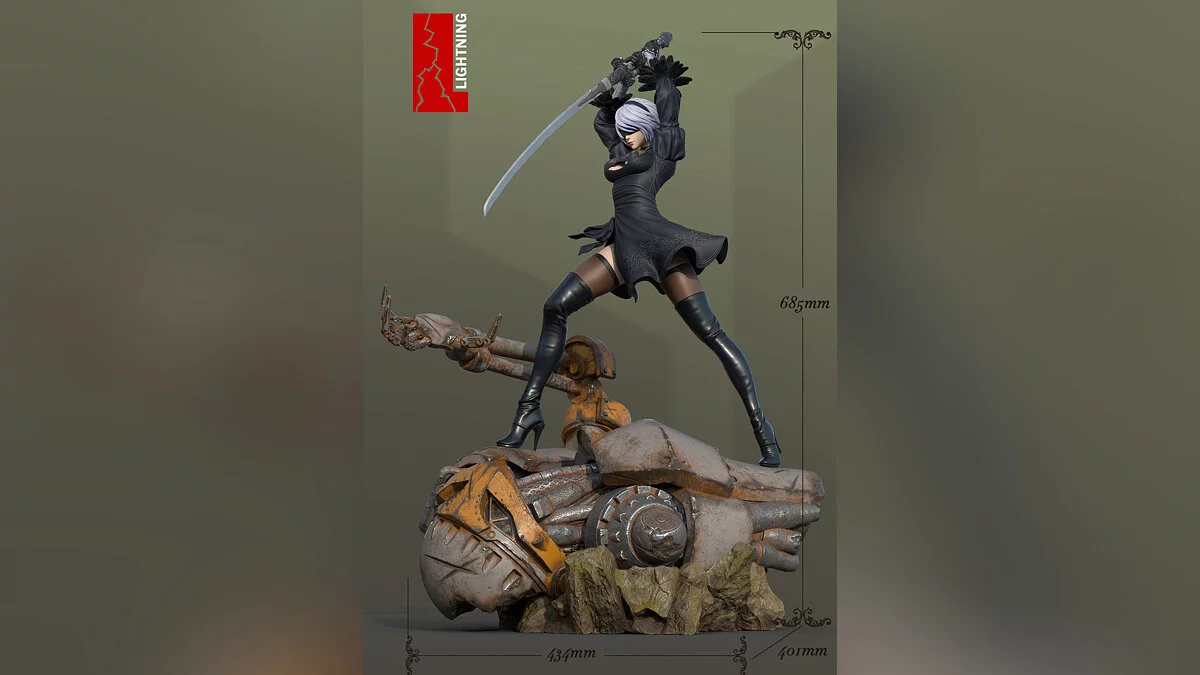 Компанией Lighting Studio была представлена новая коллекционная фигурка сексуального андроида 2B из игры NieR: Automata. Она появится в масштабе ¼. Персонаж замахивается мечом на поверженного монстра.