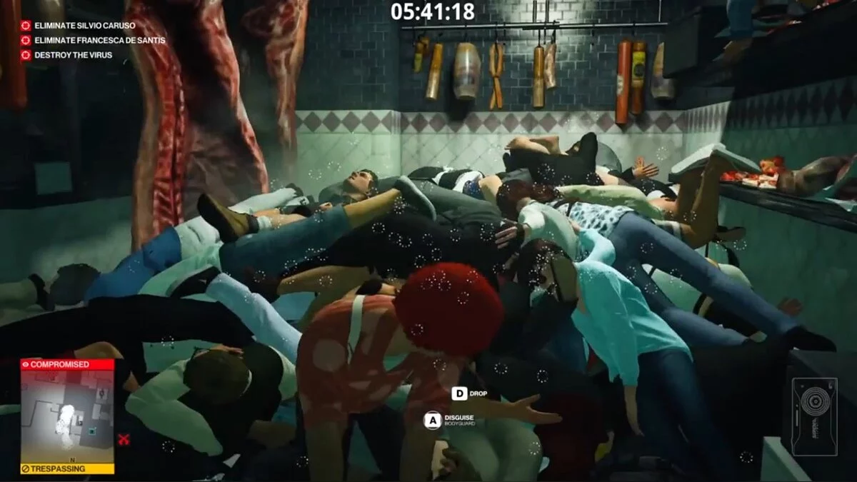 Играя в Hitman 3, вы можете «переселить» всех жителей крупного города Сапиенца (Sapienza, Italy) в холодильник для хранения мяса. Такую задачу поставил перед собой стример RTGame Daniel и выполнял ее в эфире Twitch в течение почти семи часов. Для этого ему пришлось придушить примерно 200 NPC и перетащить их тела в холодильник местного мясника.
