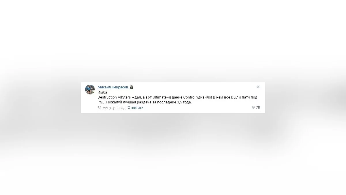 Destruction AllStars будет доступна подписчикам PlayStation Plus до 5 апреля. Control: Ultimate Edition и Concrete Genie можно будет скачать до 1 марта.
