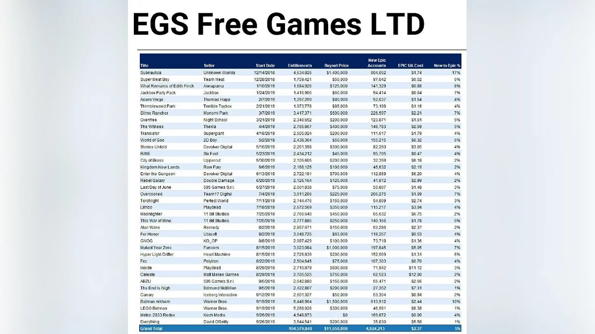 В опубликованном списке указаны не только игры, начиная с декабря 2018 года, но и количество привлеченных пользователей EGS, а также количество заведённых новых аккаунтов.