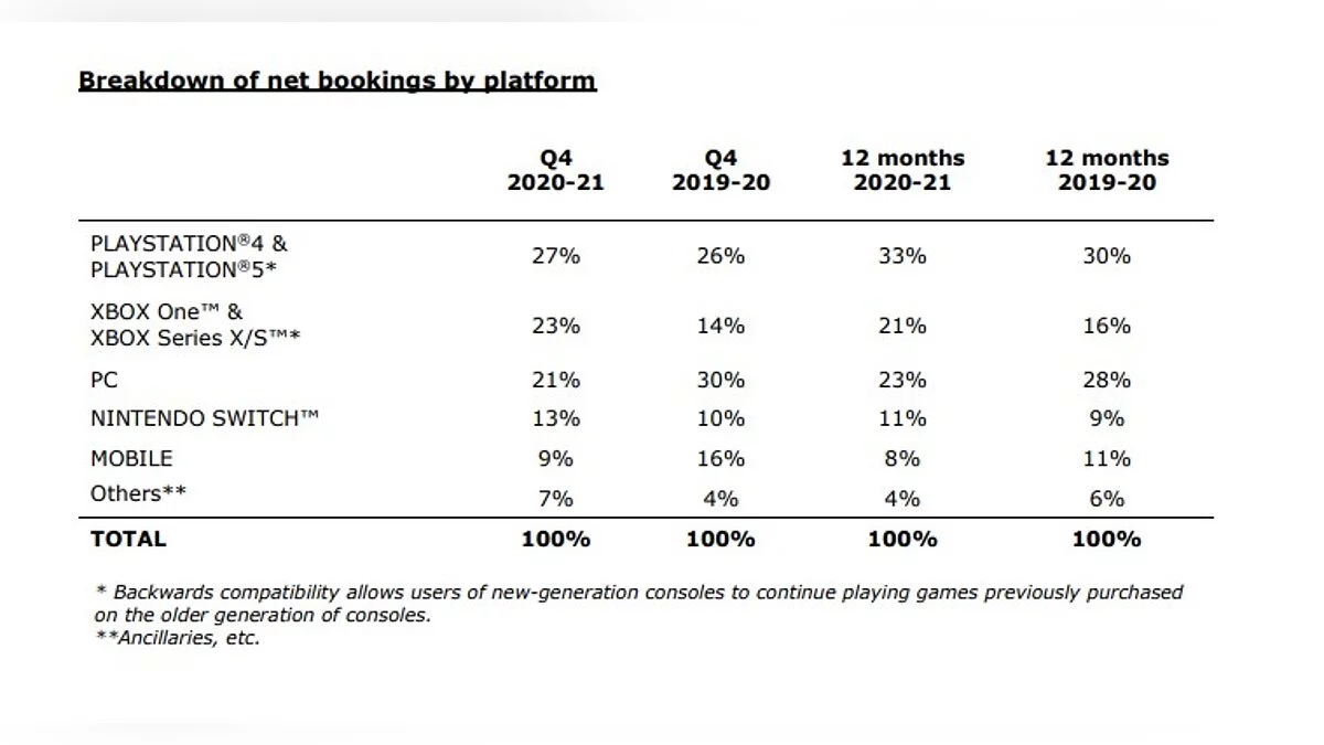 Лидирующими платформами оказались консоли PS4 и PS5 — на них приходится 33% продаж. Далее следует PC с 23% и Xbox с 21%.