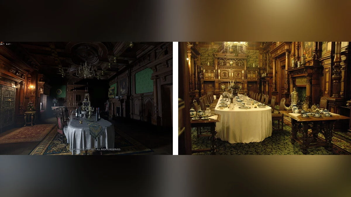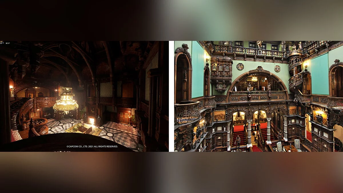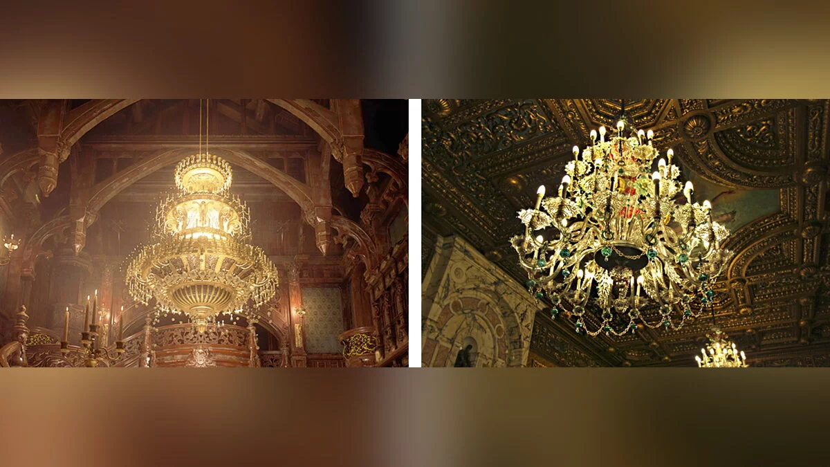 Пользователь Reddit под ником Smooth_Skin_Operator, проживающий в Румынии, решил сравнить замок Димитреску из хоррора Resident Evil Village с его прототипом — замком Пелеш из Трансильвании. Судя по опубликованным изображениям, разработчики увеличили размеры замка и добавили ему несколько башен. Все помещения внутри строения стали немного просторнее.