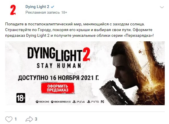В официальной группе VK, посвященной Dying Light 2, раньше времени заметили рекламу игры, в которой указаны бонусы за предзаказ и точная дата выхода.
