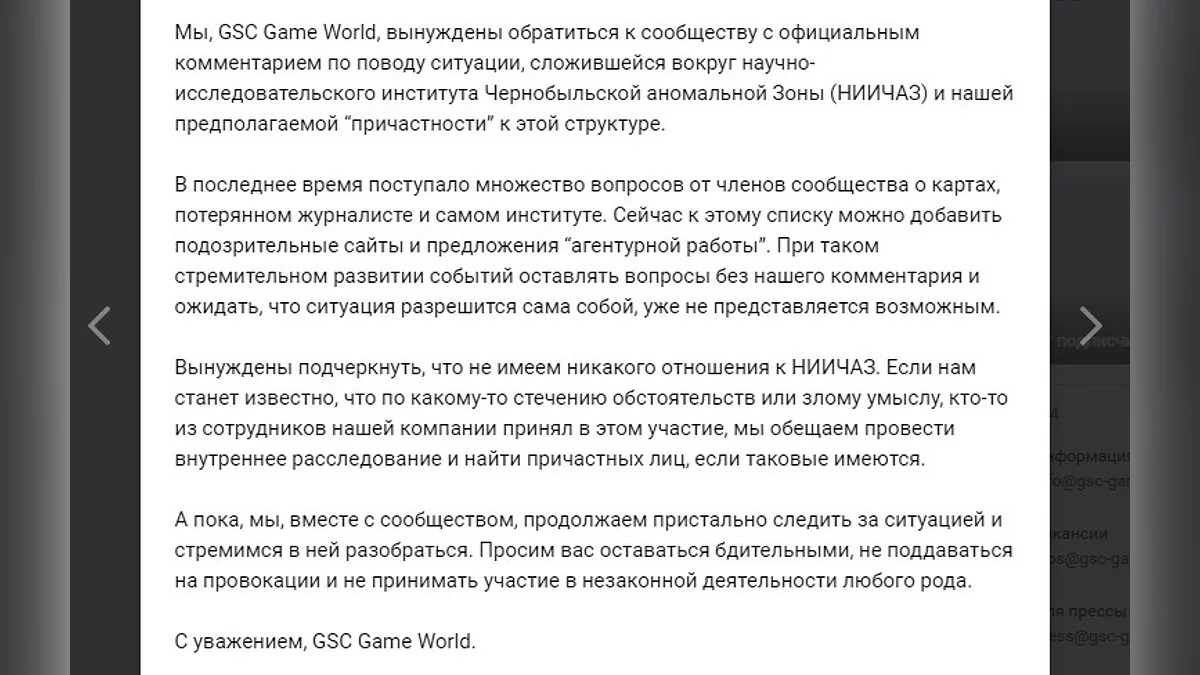 «Не имеем никакого отношения к НИИЧАЗ» — разработчики S.T.A.L.K.E.R. 2 опубликовали месседж для фанатов. Что они хотят донести?
