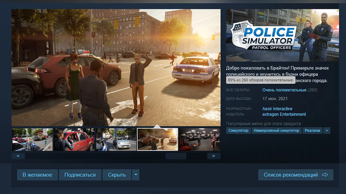 В раннем доступе Steam вышел симулятор полицейского Police Simulator: Patrol Officers, действие которого разворачивается в вымышленном американском городе Брайтон. На момент написания новости, у игры 85% положительных отзывов.