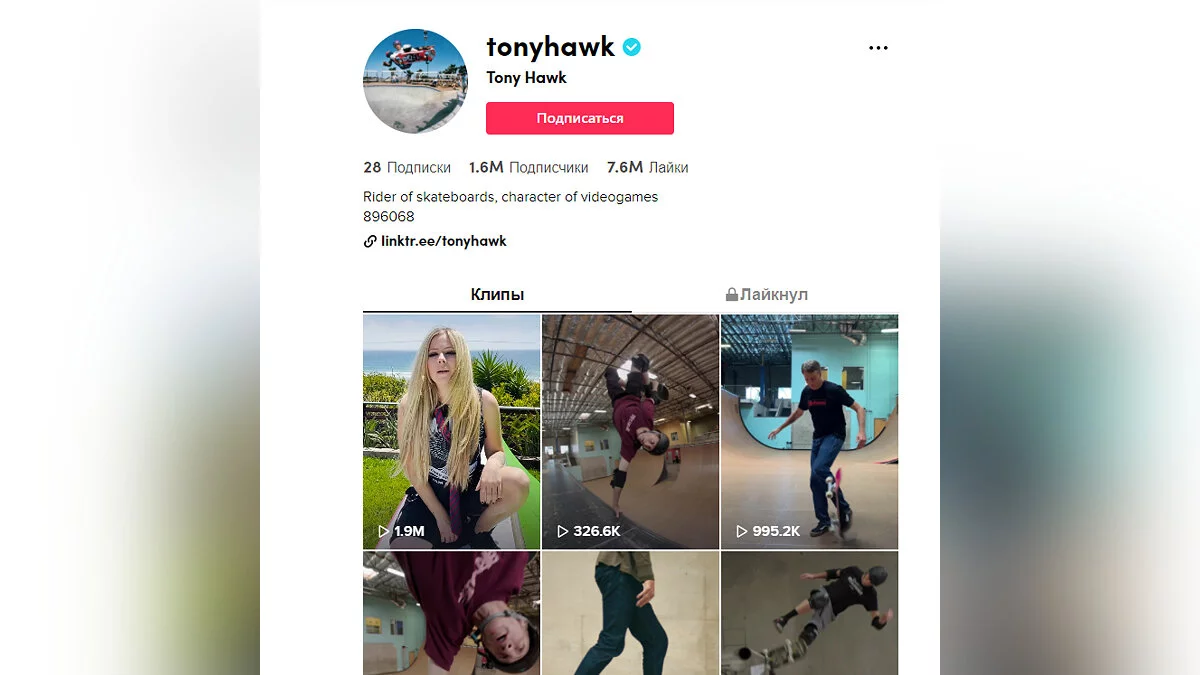 Популярная 36-летняя канадская певица Аврил Лавин (Avril Lavigne) зарегистрировалась в TikTok и буквально за день собрала 12 млн. просмотров, 900 тыс. подписчиков, а также получила свыше 2,9 млн. лайков. Так пользователи встретили ее первый ролик (на видео играет ее трек Sk8er Boi), в котором засветился скейтбордист Тони Хоук (Tony Hawk). Геймерам он в первую очередь известен благодаря серии игр Tony Hawk's Pro Skater.