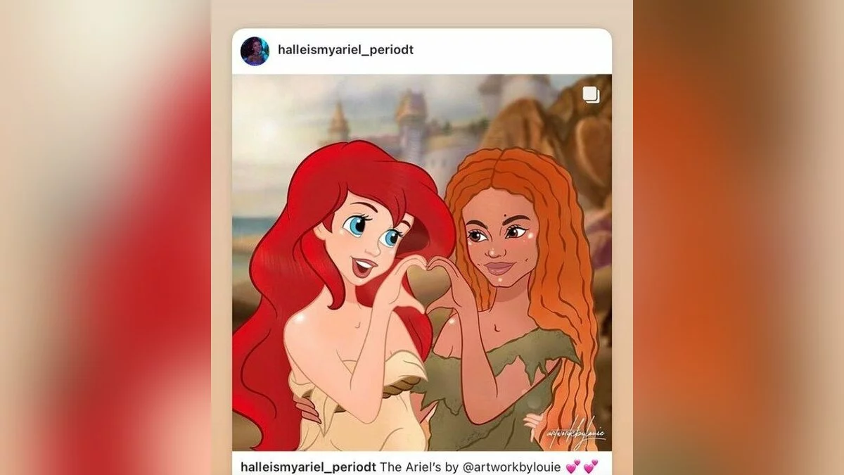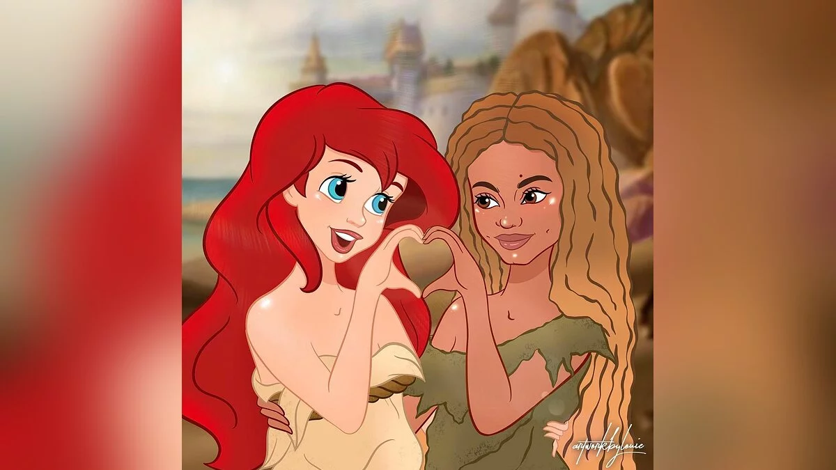 Актриса Холли Бэйли (Halle Bailey), которая исполнит роль принцессы Ариэль в предстоящем фильме «Русалочка», добавила в свои истории Instagram арт, на котором ее персонажа изобразили с героиней одноименного мультфильма Disney 1989 года.