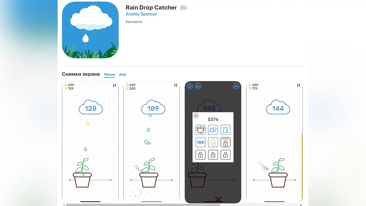 - Rain Drop Catcher — игра, в которой нужно поливать растения, стараясь не проронить ни капли (загрузить бесплатно);