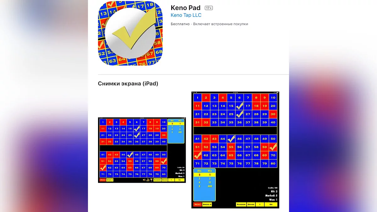 - Keno Pad — игра-лотерея для iPad (загрузить бесплатно);