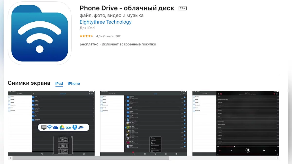 - Phone Drive — инструмент, позволяющий хранить данные на облачном диске (загрузить бесплатно);