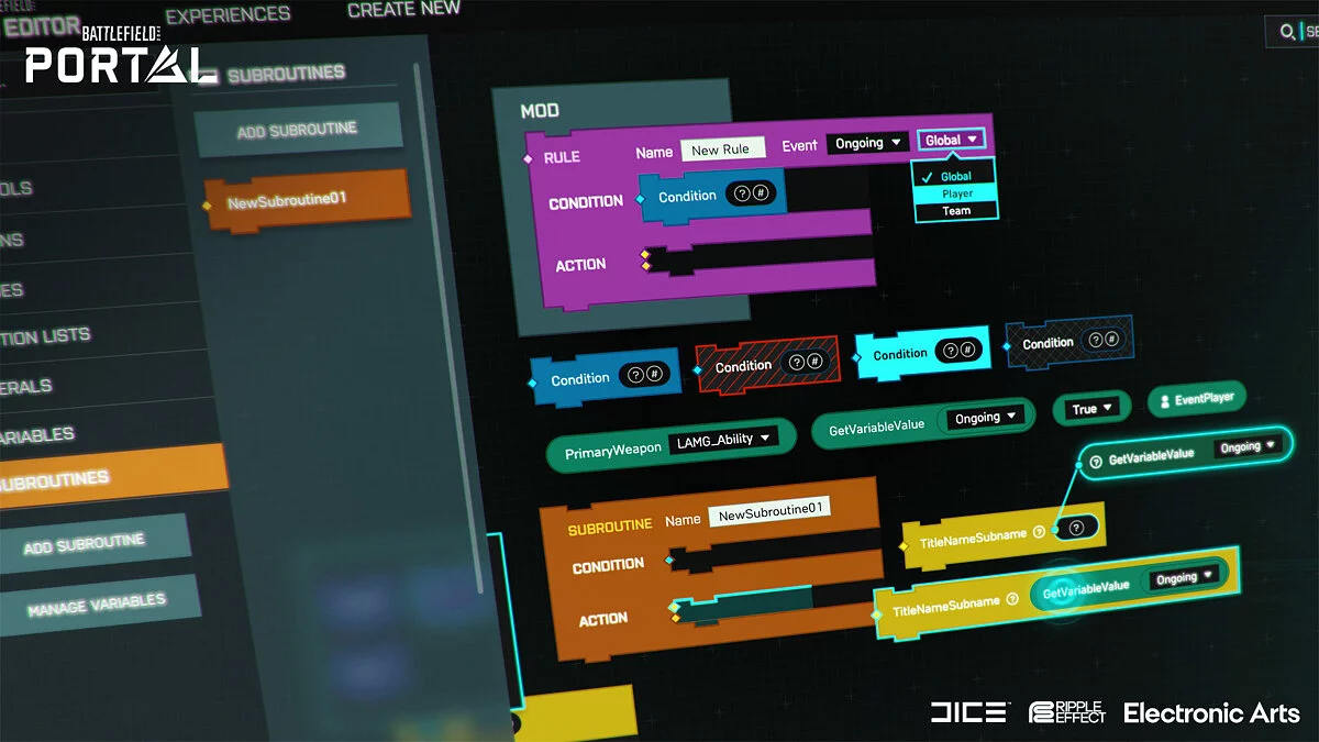 - Portal представляет собой глубокий редактор, где игроки могуг выбрать карту, оружие, гаджеты и технику, а также настроить сотни параметров, включая условия победы, количество игроков и наносимый урон.