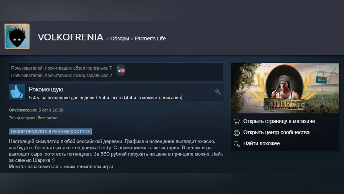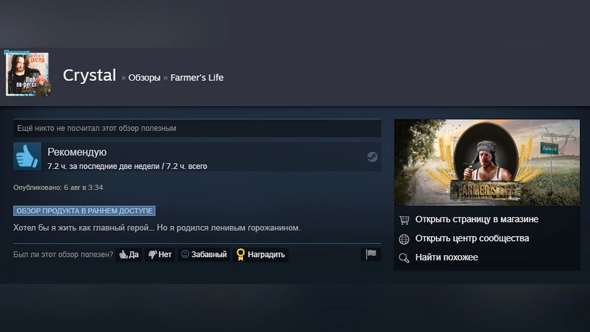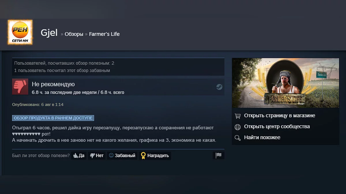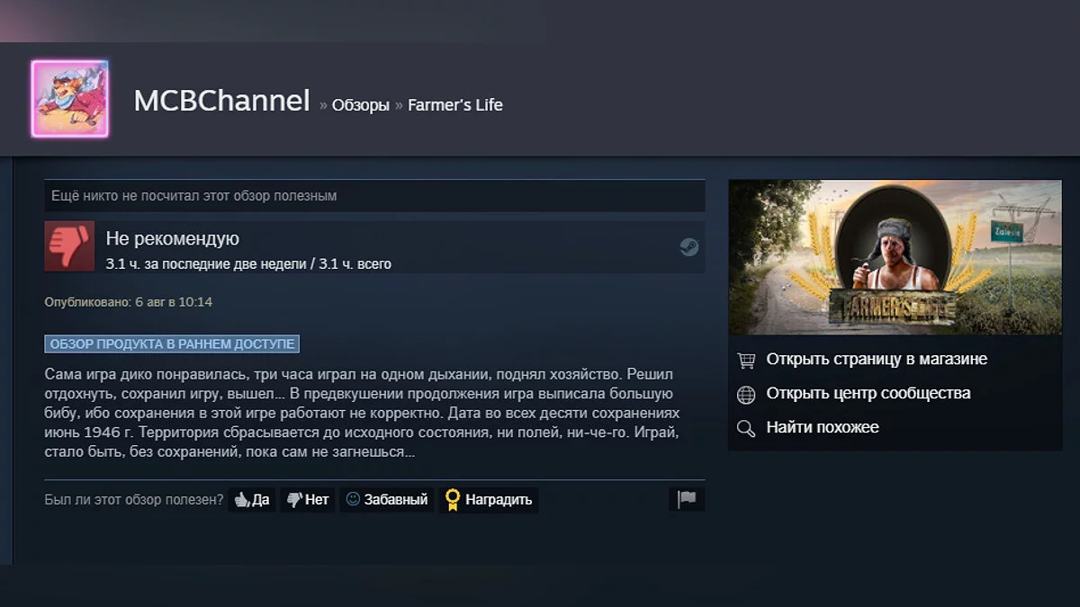 В Steam, на момент написания новости, Farmer's Life имеет 76% положительных отзывов. Некоторые геймеры отмечают, что в игре есть баг с сохранениями.