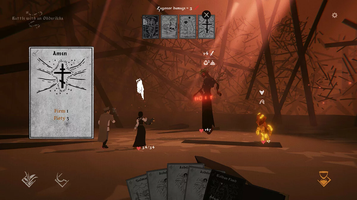 В качестве боевой системы игра использует карточную механику. Имеется древо навыков, а также специальная внутриигровая энциклопедия, содержащая в себе информацию о народных сказках и мифах.