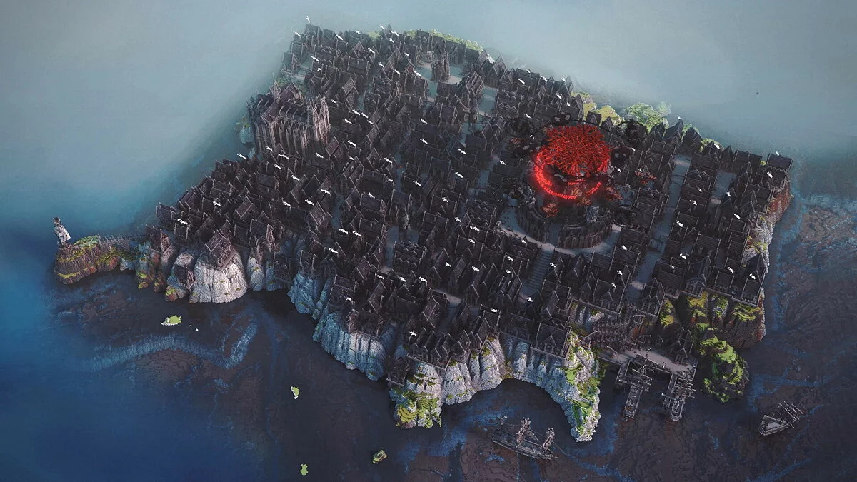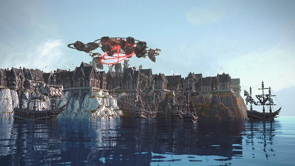На карте расположены более 500 зданий, включая собор, ратушу, порт и часовую башню, а также 4 корабля, статуи и таинственный портал в небе.
