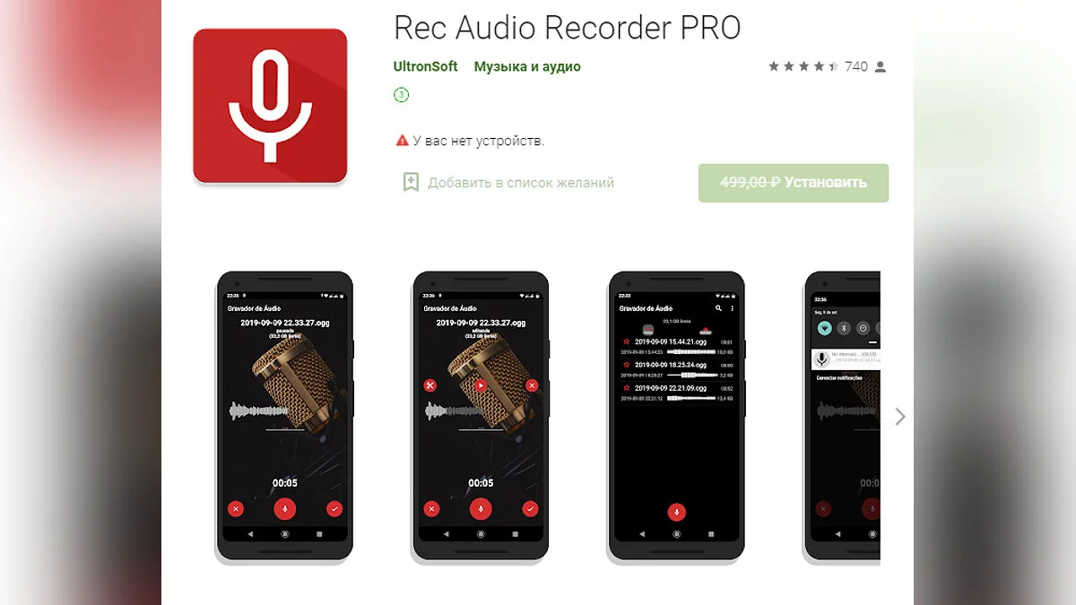 - Rec Audio Recorder PRO — продвинутый диктофон с возможностью записи звука в высоком качестве (загрузить бесплатно);