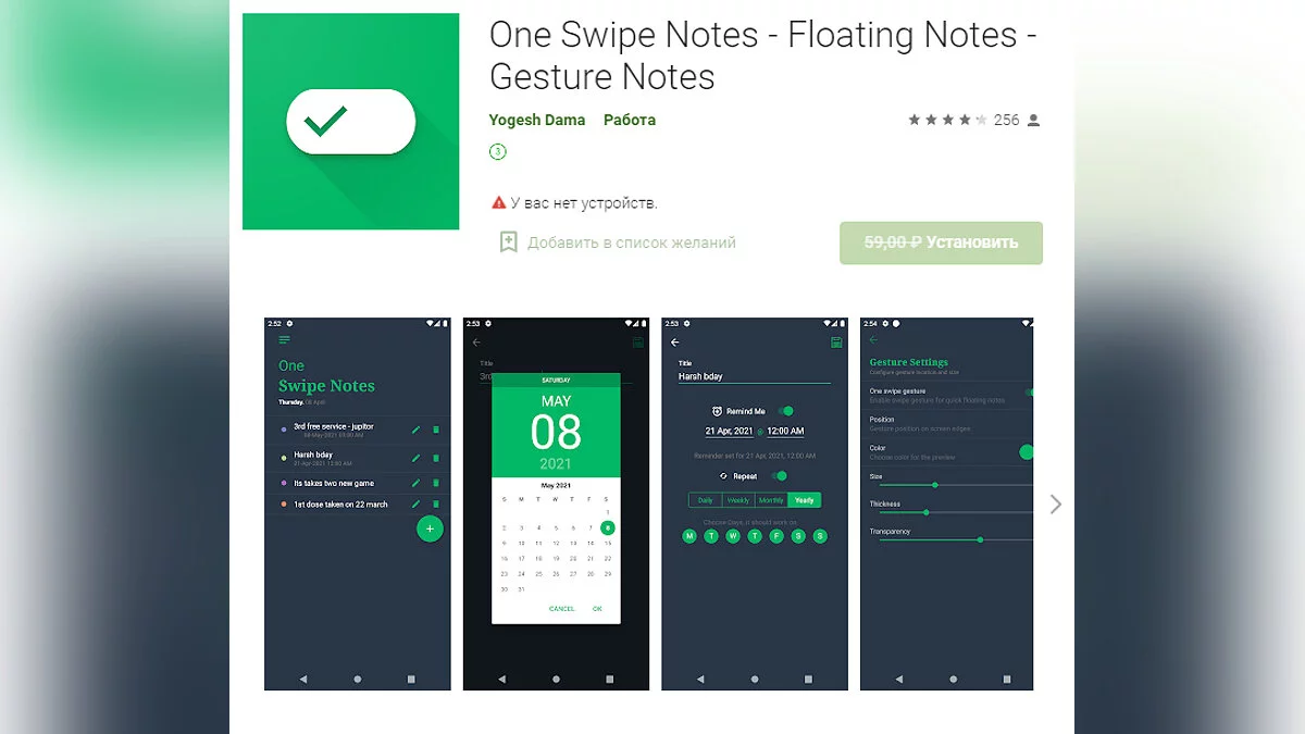 - One Swipe Notes — Floating Notes — Gesture Notes — приложение для быстрого создания заметок (загрузить бесплатно).