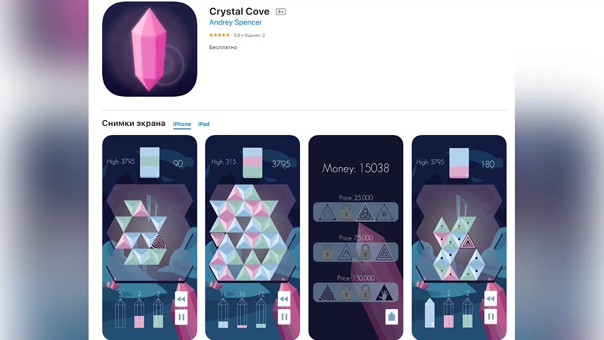- Crystal Cove — головоломка с треугольниками (загрузить бесплатно);