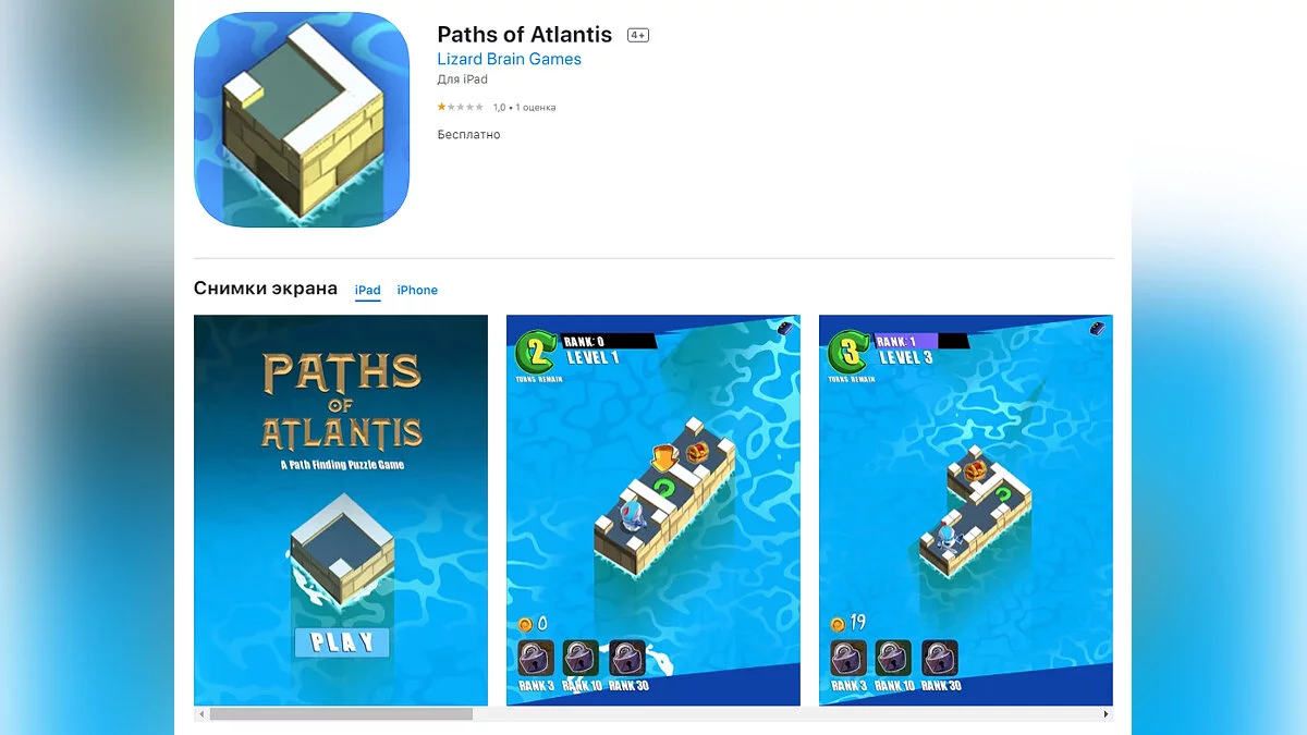 - Paths of Atlantis — головоломка про подводный лабиринт (загрузить бесплатно).