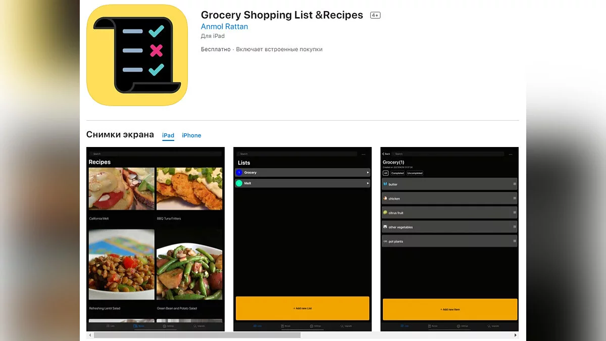 - Grocery Shopping List and Recipes — приложение для удобного создания покупок (загрузить бесплатно);