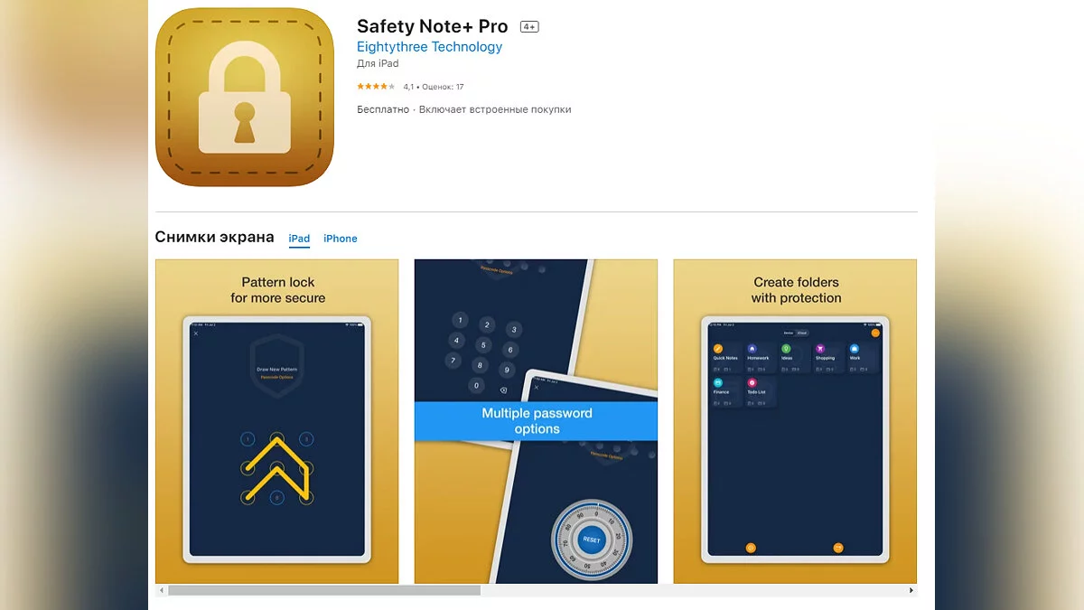 - Safety Note+ Pro — приложение для хранение записок и заметок с защитой от несанкционированного доступа (загрузить бесплатно).