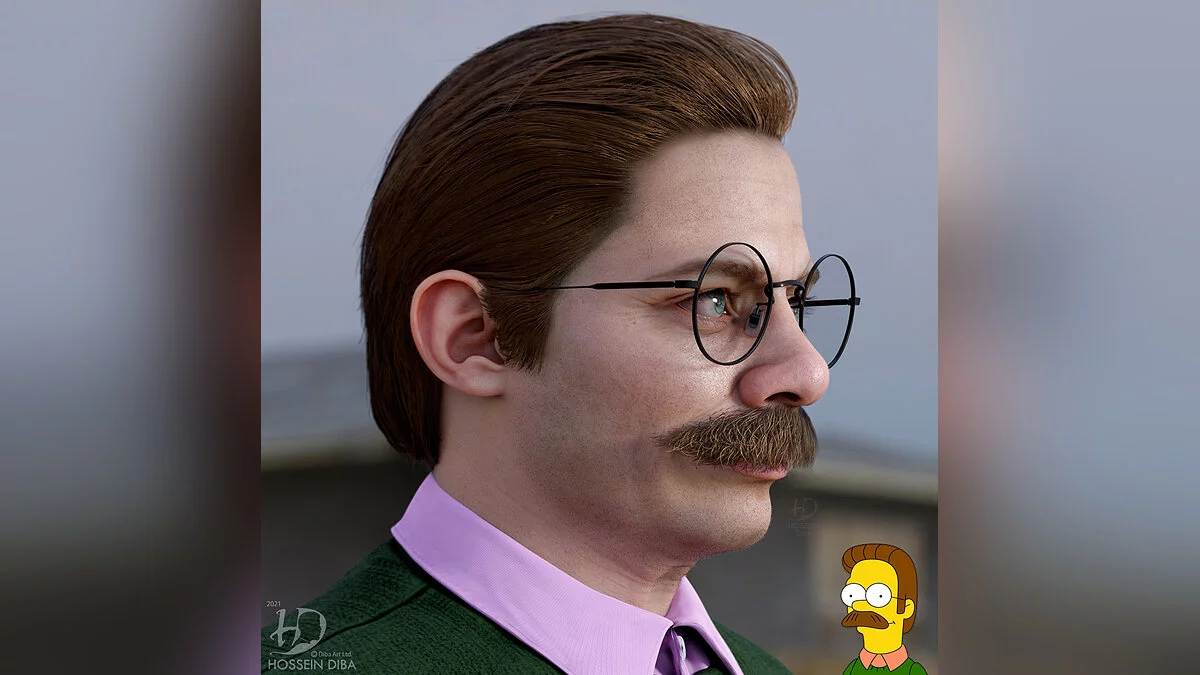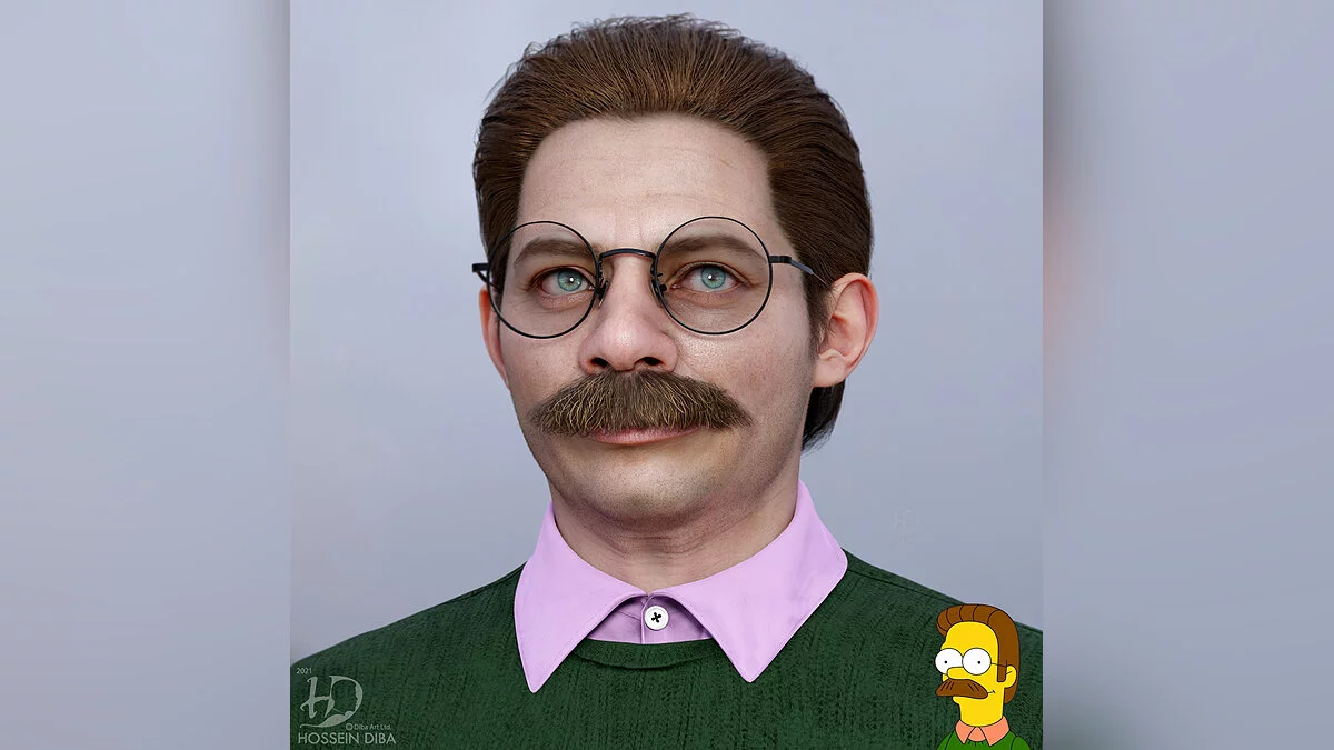 Турецкий художник Хоссейн Диба (Hossein Diba) продолжает превращать героев популярных игр и мультфильмов в реальных людей. На этот раз энтузиаст решил показать, как могут выглядеть клоун Красти и Нед Фландерс, персонажи культового мультсериала «Симпсоны», живи они в реальном мире.