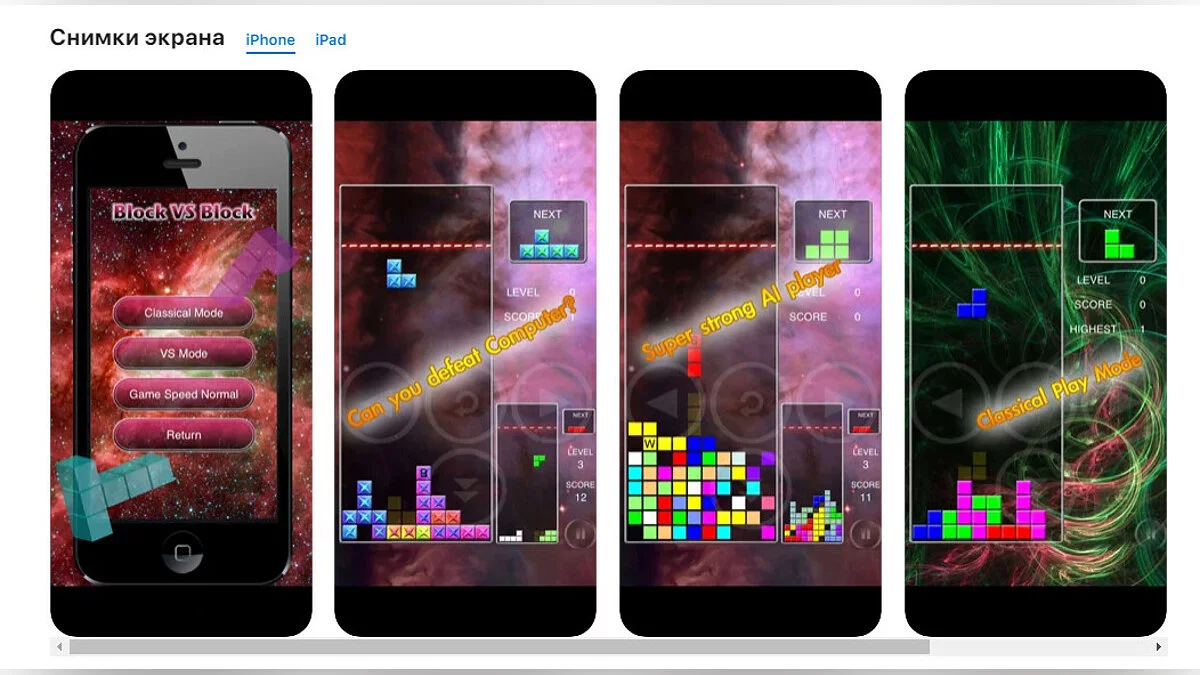- Block vs Block — продвинутая версия тетриса с возможностью играть против компьютера или другого человека (загрузить бесплатно);