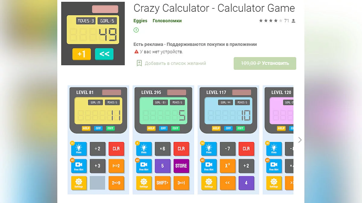 - Crazy Calculator — Calculator Game — головоломка для развития математических способностей (загрузить бесплатно);
