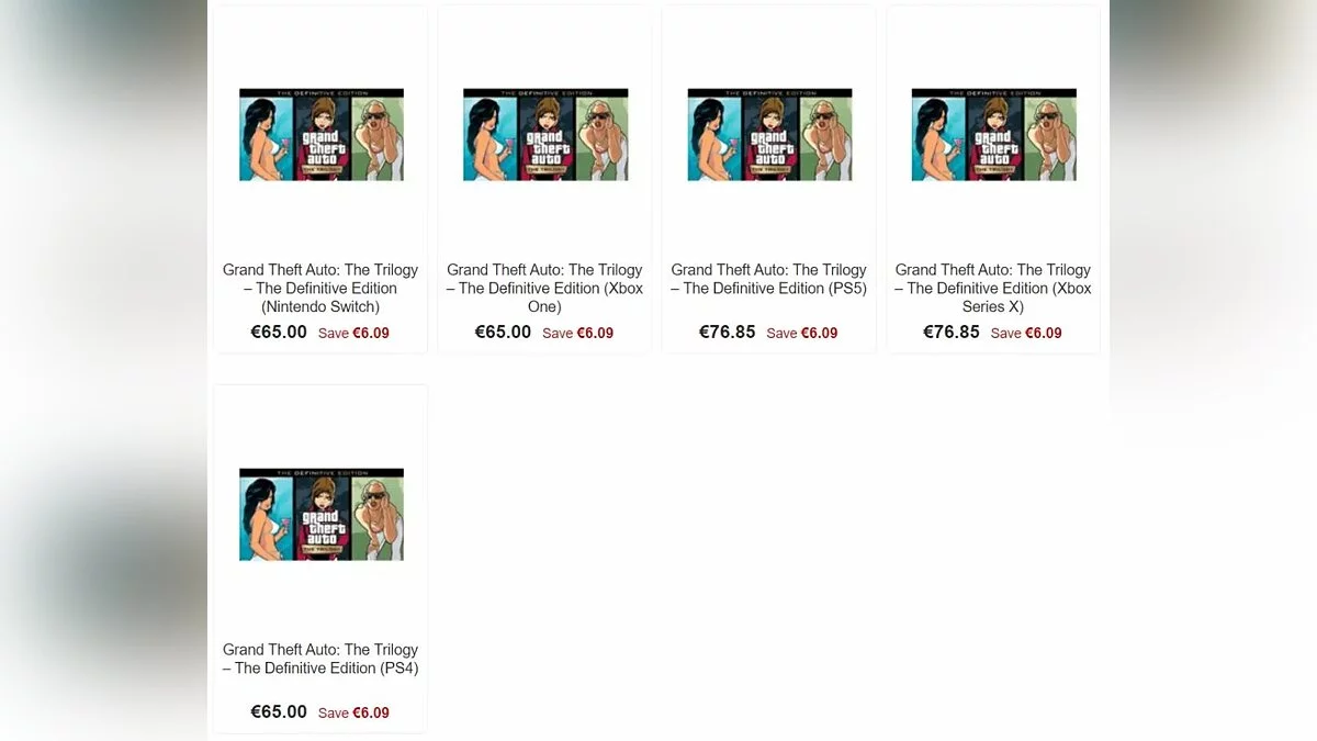 После анонса GTA: The Trilogy — The Definitive Edition и вероятной даты выхода появились свежие данные о трилогии ремастеров. Британский магазин Base сообщил о ценах на консольные версии.
