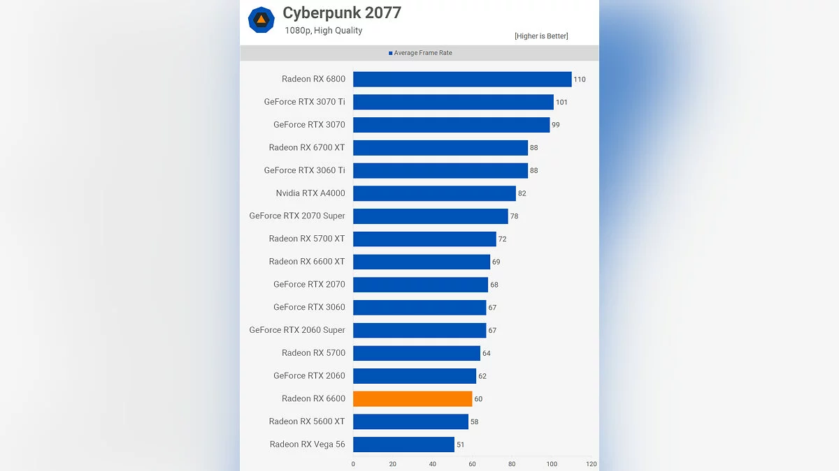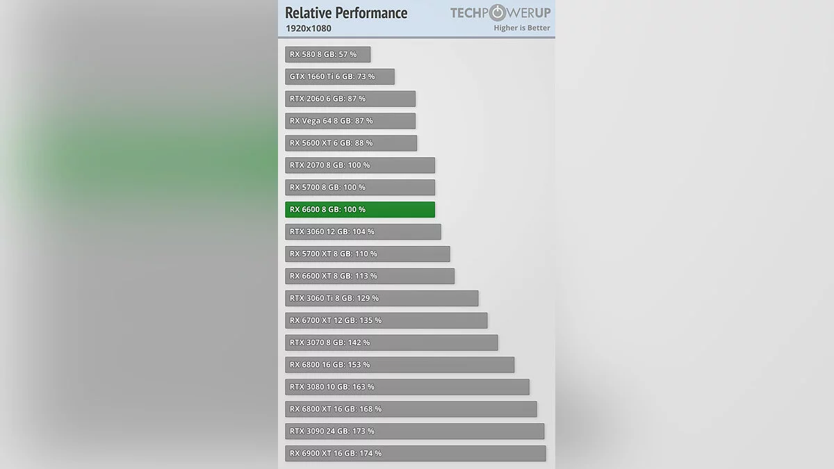 Судя по тестам, в разрешении 1080p модель Radeon RX 6600 лишь немного уступает RTX 3060.