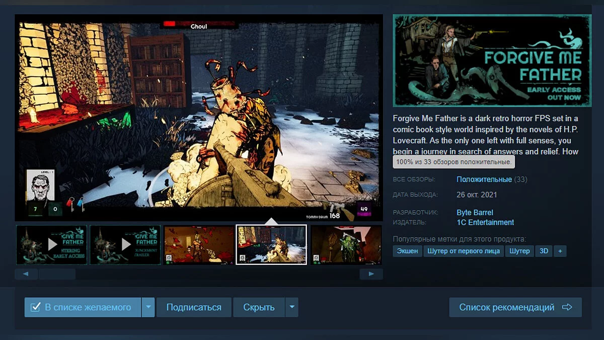 Купить Forgive Me Father можно в Epic Games Store (297 рублей), GOG (339 рублей) и Steam (339 рублей) с учетом скидки 15% (действует до 2 ноября).