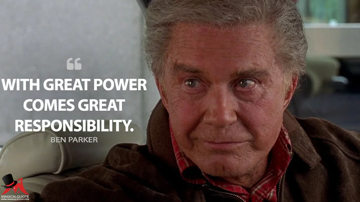 Если верить слуху, то знаменитую и одну из самых запоминающихся фраз в истории франшизы скажет сам Питер Паркер Тоби Магуайра. Он произнесёт её обращаясь к Паркеру Тома Холланда. При этом Человек-паук Магуайра уже будет смертельно ранен, и это будет его последнее наставление Пауку Холланда.