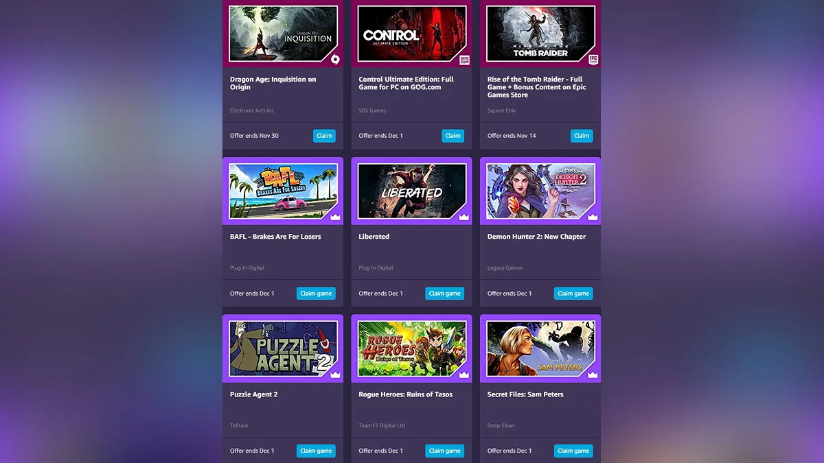 Все 9 игр можно получить совершенно бесплатно, если оформить пробную подписку на сервис Prime Gaming. Для этого нужно зарегистрироваться на Amazon и привязать свою банковскую карту (позже её можно будет отвязать). Далее необходимо зайти на страницу раздачи и забрать халявные ключи.