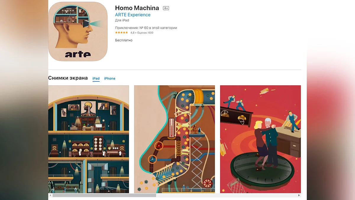 - Homo Machina — головоломка, вдохновленная работами ученого-авангардиста Фрица Кана (Fritz Kahn). В игре геймеры отправятся на гигантскую фабрику в стиле 1920-х годов, которая представляет собой человеческий организм (загрузить бесплатно);