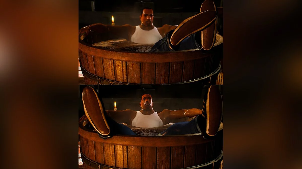 Моддер перенес Си-Джея в The Witcher 3. На скриншотах он отдыхает в бадье и целуется с Йеннифэр