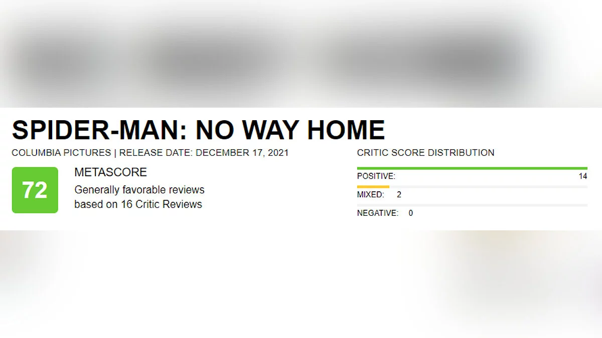 На момент написания новости средняя оценка «Человека-паука: Нет пути домой» на Metacritic составляет 72 балла.