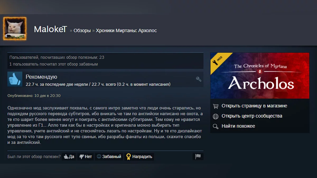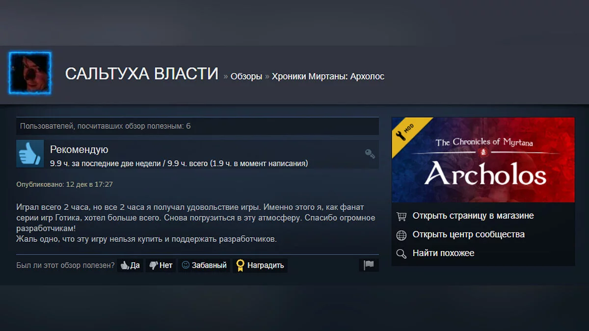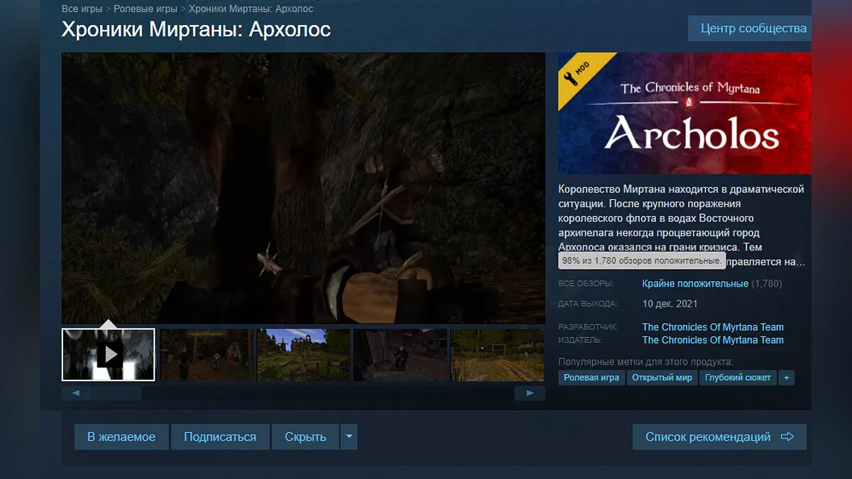 На прошлой неделе мы сообщали о релизе крупного мода для Gothic 2 под названием «Хроники Миртаны: Архолос», который представляет собой приквел первой части Gothic. Всего за несколько дней модификация получила свыше 1,7 тысяч отзывов, 98% из которых оказались положительными.